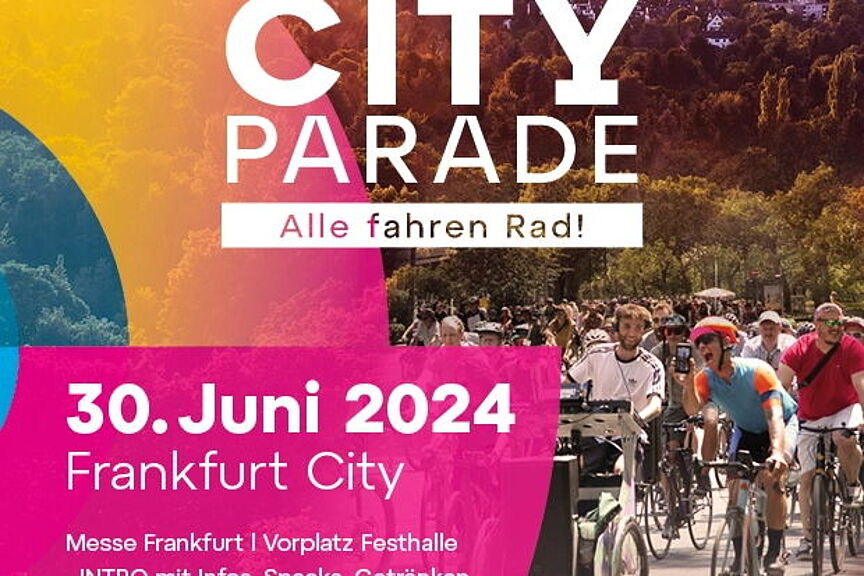 Nach der mitreißenden Premiere 2023 rollt die EUROBIKE CITY PARADE am Sonntag, 30. Juni 2024, zum zweiten Mal rund 15 Kilometer durch die Straßen Frankfurts. Das Motto der großen Fahrrad-Demonstration, zu der die Fahrradmesse EUROBIKE, ADFC Hessen und ADFC Frankfurt aufrufen, lautet auch diesmal "Alle fahren Rad". Dazu bieten die breiten Straßen genügend Platz für alles, was Speichen hat: mehrspurige Spezialräder, Lastenräder, Anhänger, Tandems. Es wird so langsam gefahren, dass auch Ältere und Kinder gut mithalten können. Damit aus der Parade auch eine Party wird, legt DJ-on-Bike Dom Whiting aus Großbritannien packende Beats zum Mitgrooven auf,