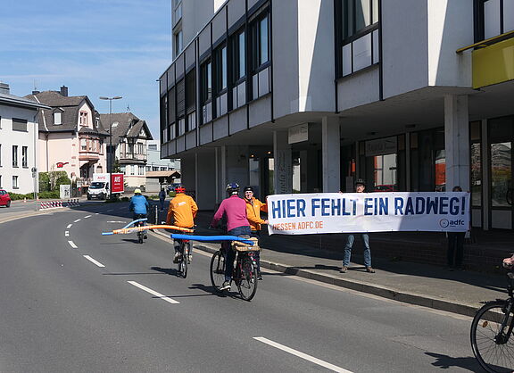 Der ADFC Bad Homburg/Friedrichsdorf hat bei einer Fahrt auf der Dietigheimer Straße gezeigt, wie viel Platz ein Fahrrad benötigt und beklagt, dass alle Radfahrstreifen in Bad Homburg zu schmal sind.